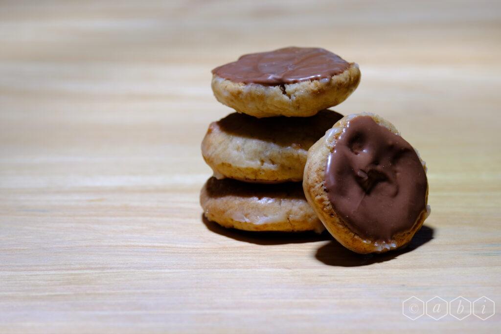 - Let the biscuits rest briefly after taking them out of the oven, but while they are still warm, dip the rounded side in the glaz, then set aside to cool and harden
